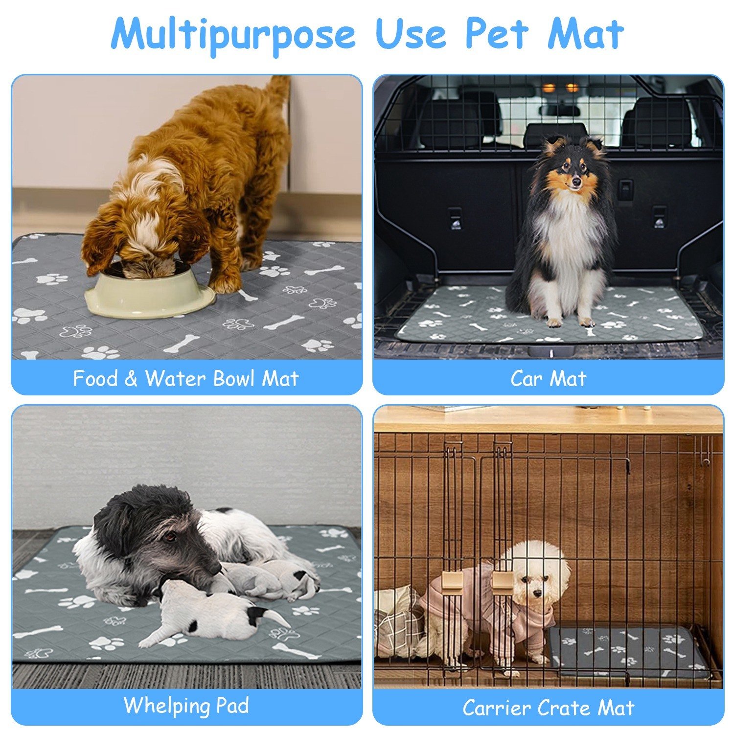 *Multiple Uses*:Our pet training potty pads are perfect for housebreaking puppies,protecting crates,pet carriers during trips,travel pee pads,whelping pads,incontinent dogs,lining kennels & playpens,post-surgery,etc.. Can be used on floor,carpet,bed,sofa,car trunks,etc..