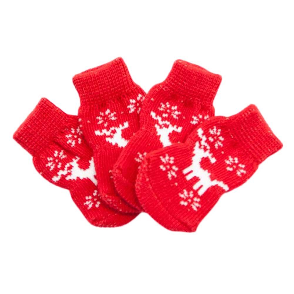 4 Pcs Christmas Red Elk Dog Knitted Pet Socks Cartoon Cute Puppy Cat Socks