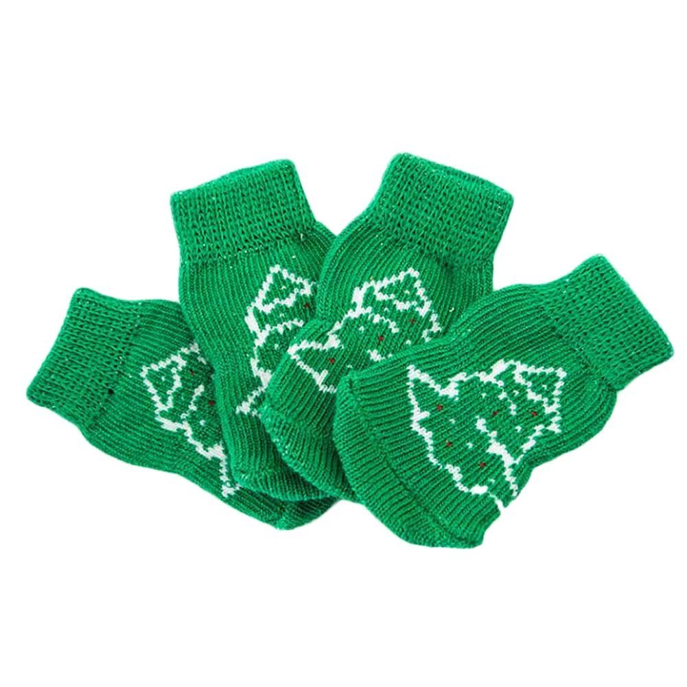 Home > 4 Pcs Green Christmas Tree Dog Knitted Pet Socks Cartoon Cute Poodle Teddy Socks
