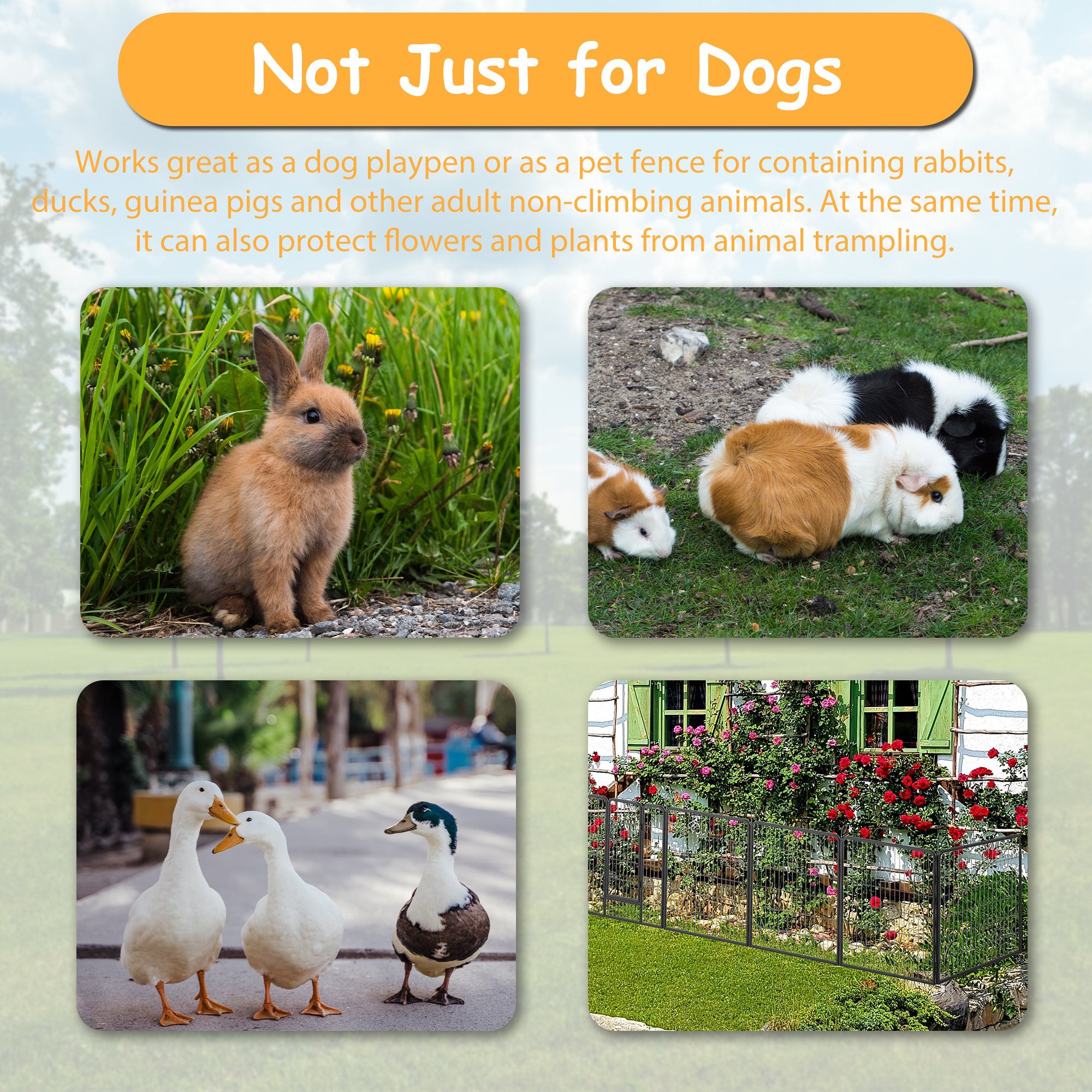 2.[Safe & Secure] Designed with round edges and smooth steel wires, dog run playpen perfectly protect your pets from hurting; The upgraded flat rods can be easily inserted into the ground for greater stability and rigidity.