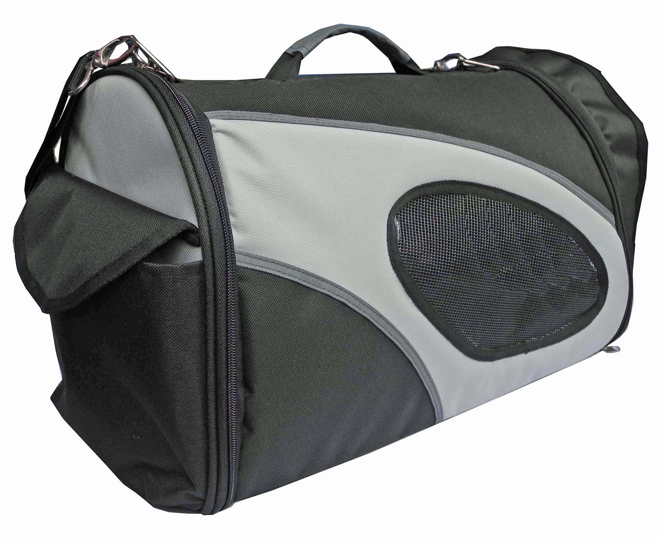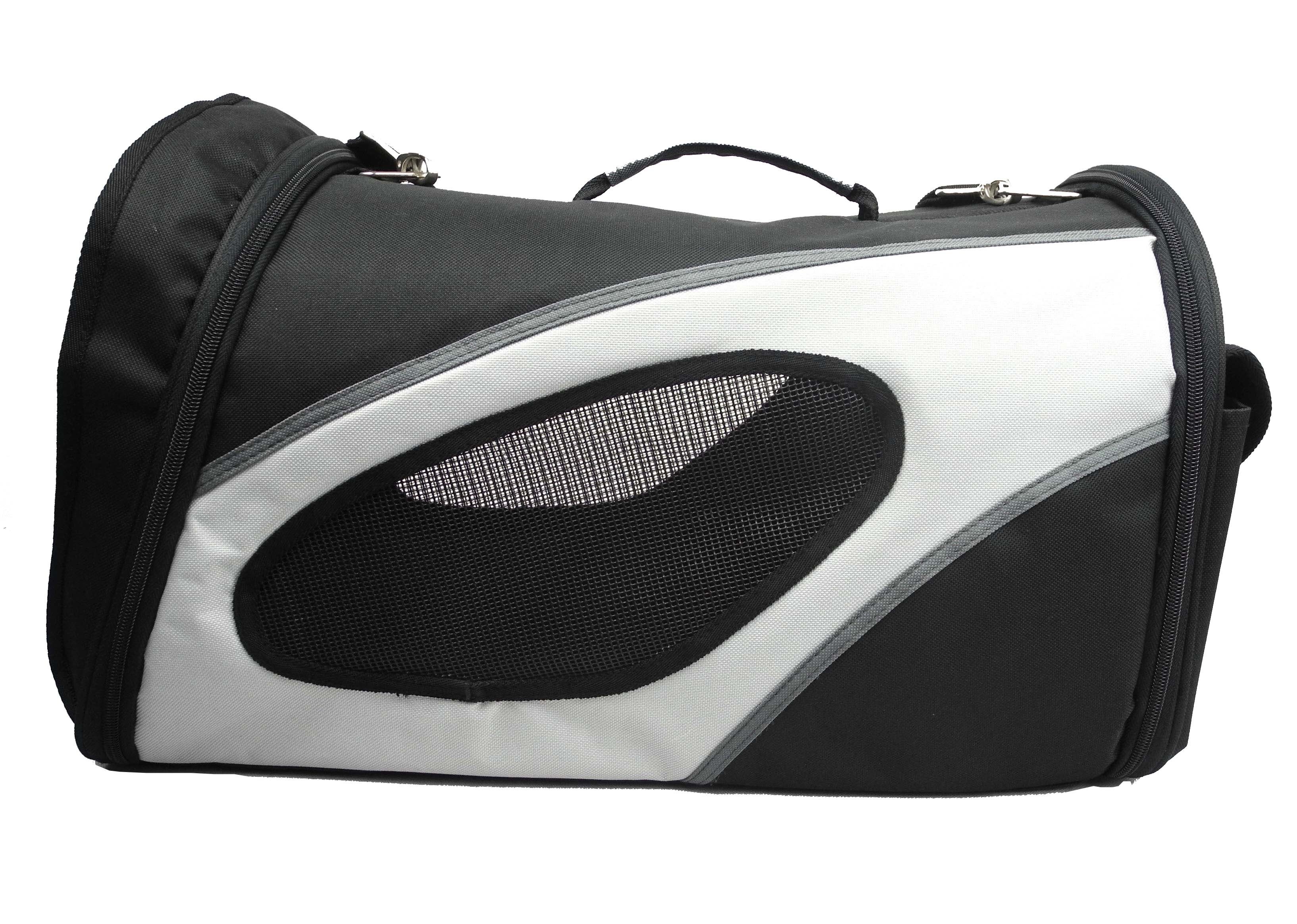 The Airline Approved Phenom-air Travel Pet Carrier is constructed with Ballistic Nylon and Tough Micro-Mesh. Features a cylindrical design for added wiggle room and a bottom sturdy yet flexible bottom board. With 360 Degrees of mesh view this pet carrier has a lot of room for sunlight and is fully breathable. Features a large back pouch for added belongings and a built-in leash holder. Comes with Over-The-Shoulder carrying straps.