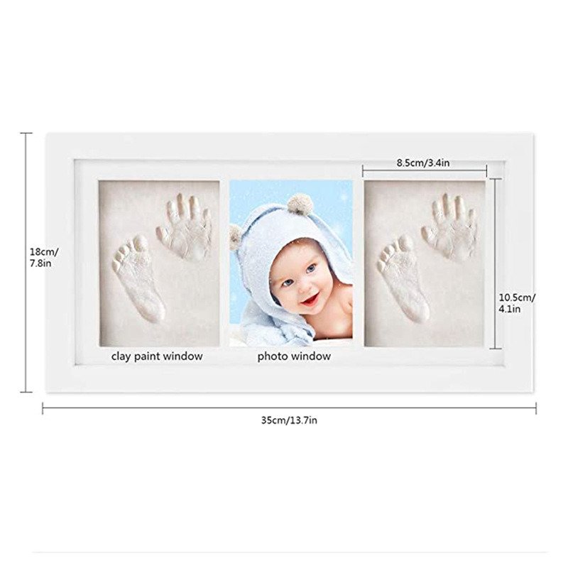 5.Sturdy Wood Frame, Real Glass Cover - Our baby handprint footprint keepsake kit maintains its pristine condition for years to come. It’s a lovely, everlasting newborn keepsake for your baby room decor. 35*18cm.