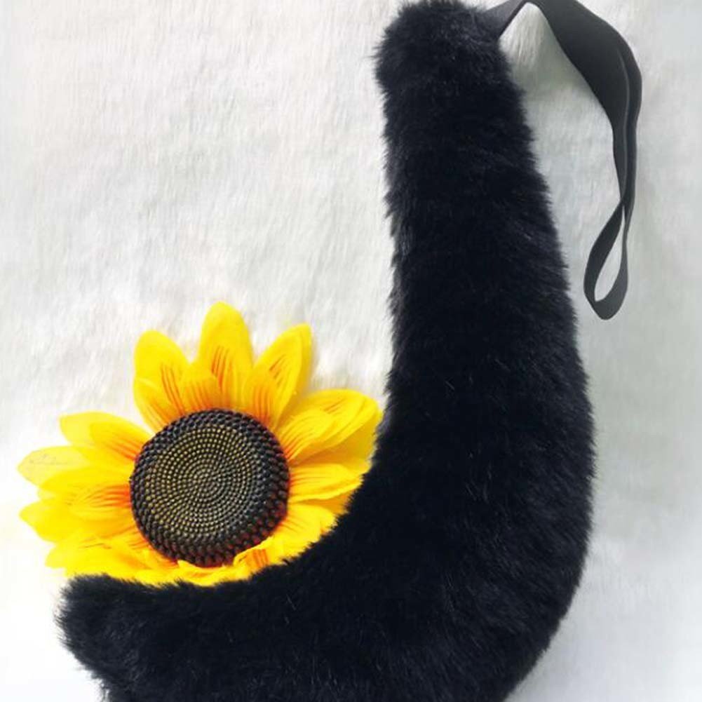 Black Plush Cat Tail Cosplay Wolf Dog Fox Tail Pluffy Animal Tail Halloween Christmas Party Costume Dress Up