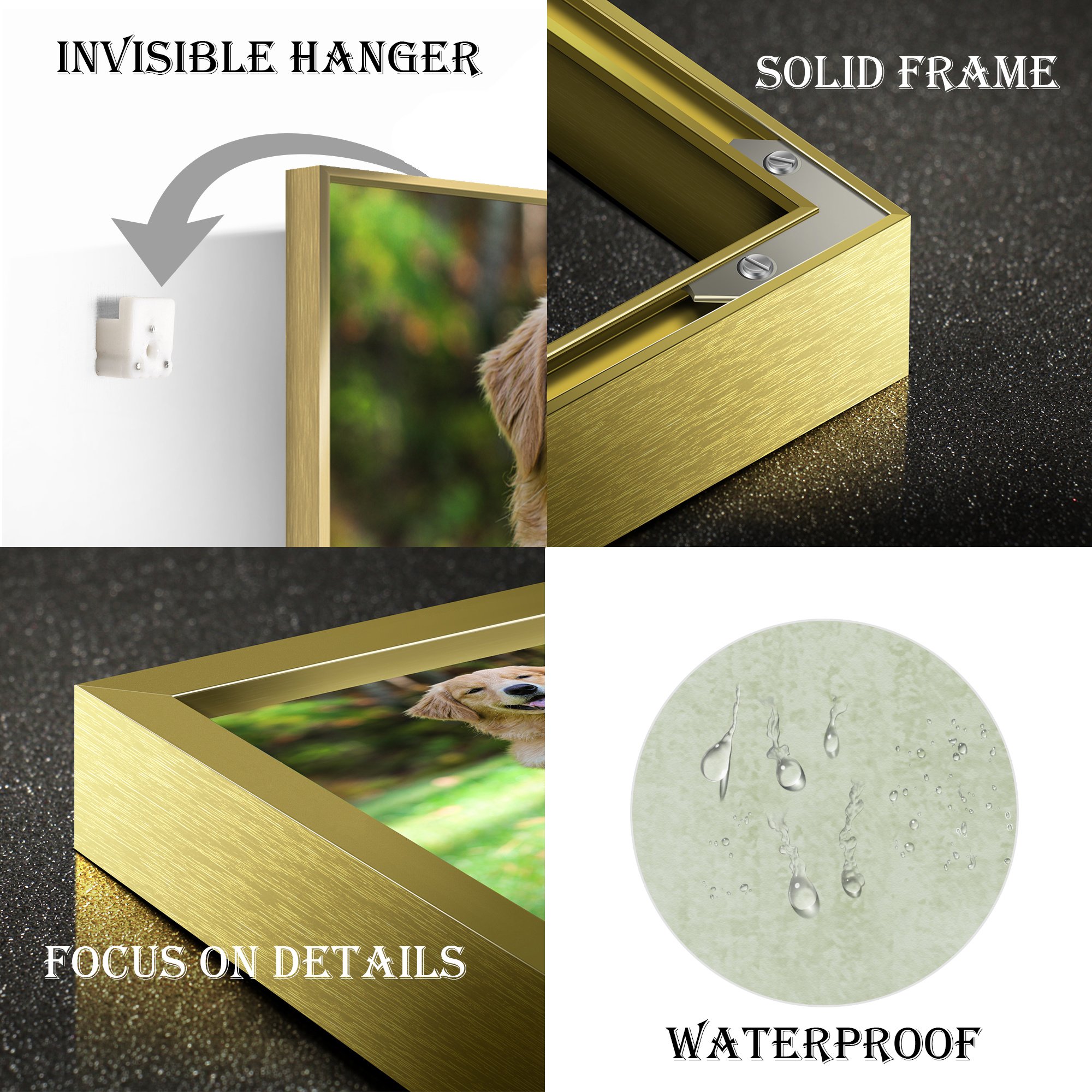 ❣️HIGH QUALITY: The photo printing frame is made of aviation grade aluminum alloy, durable, brushed effect, not easy to break scratch, fashion beautiful. High quality canvas is printed in HD with full color, waterproof and anti-fade.