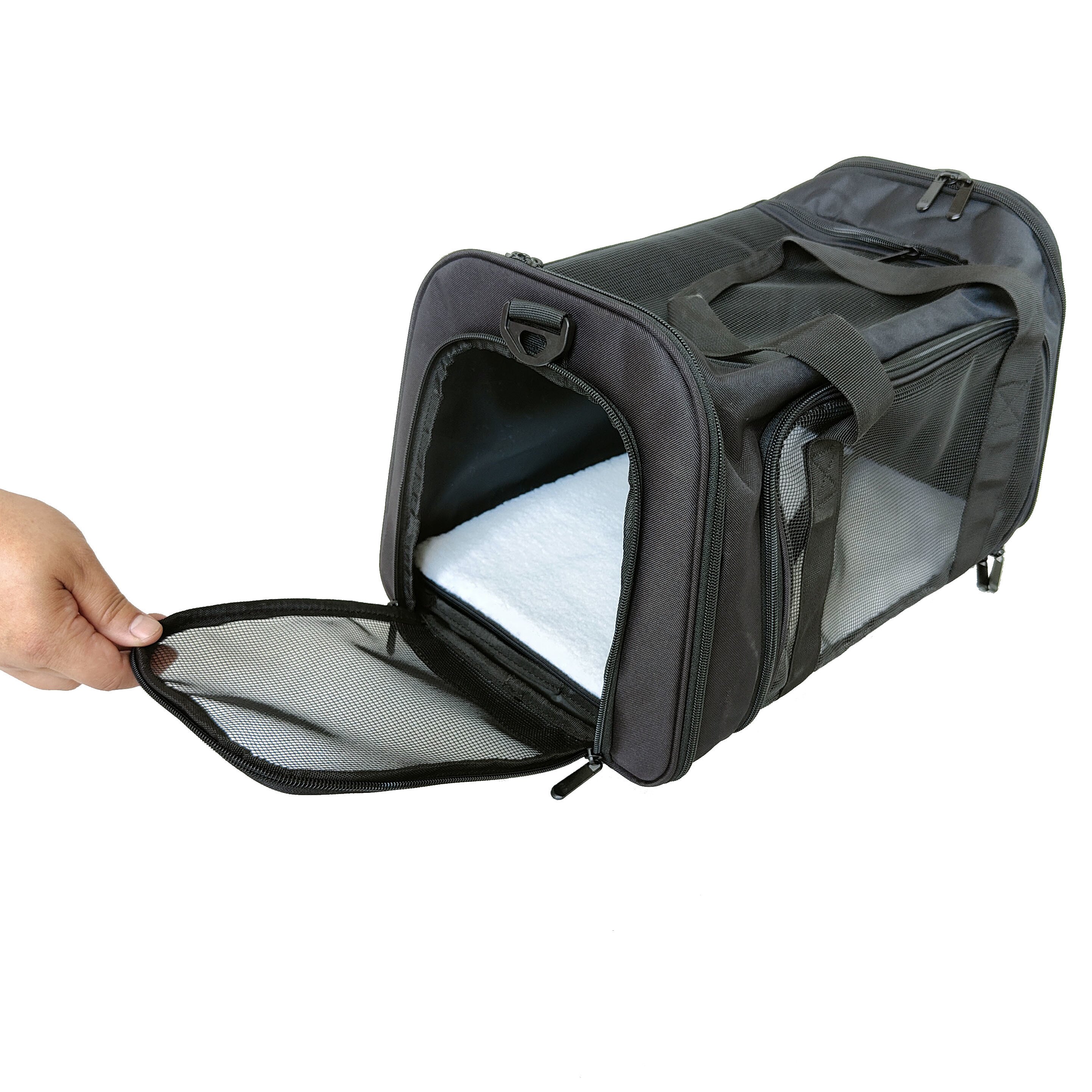 Five Expanded Entrances; Easier To Access: 1 Top-loading; 2 large side doors; 1 front entrance and 1 back entrance. All entry sizes are increased compared to the other pet carriers in the market; which makes it easy for your pet to get in or out without getting scratched.This pet carrier bag fits for medium cats; large cats or small dogs; especially for cat parents who keep more than 2 cats.