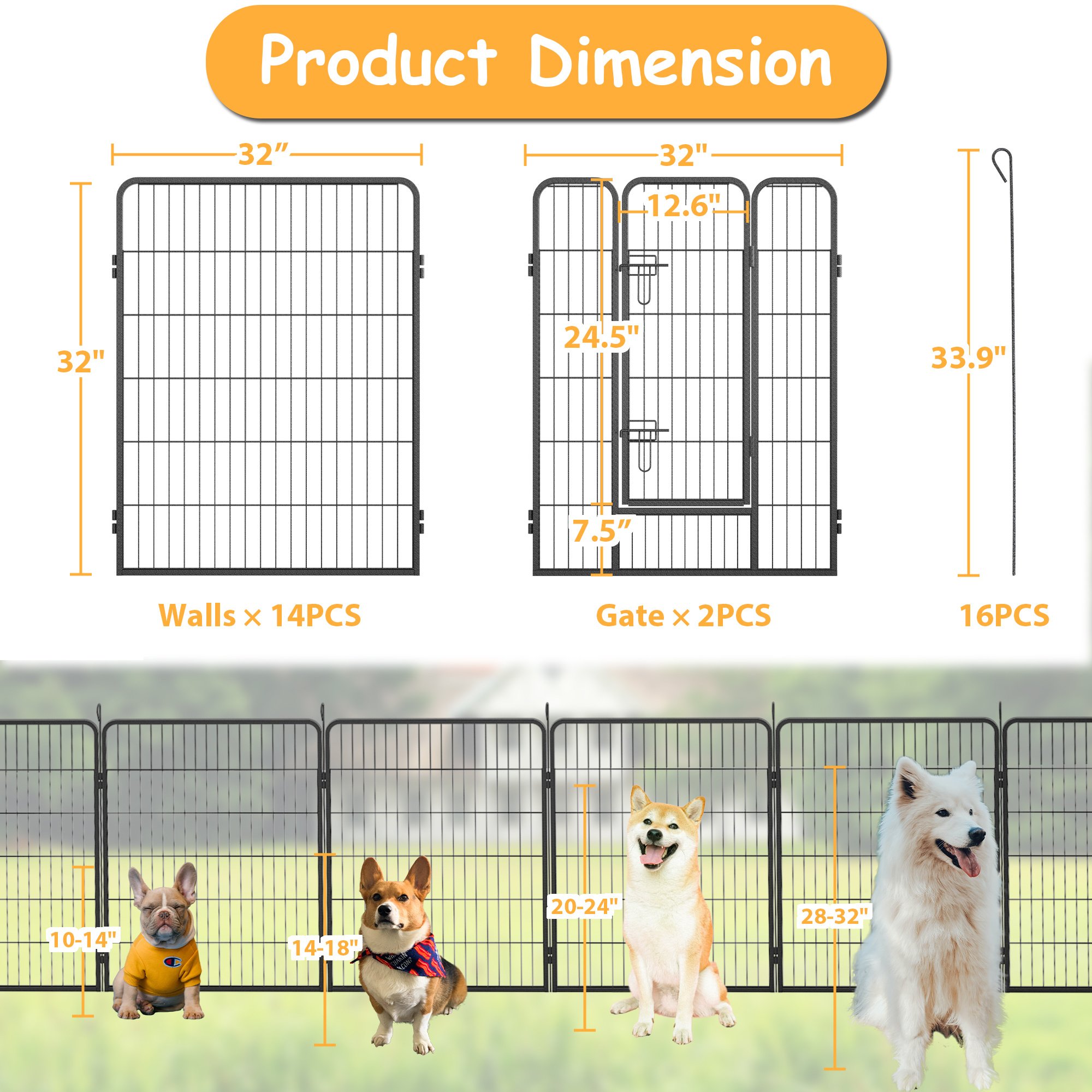 Dog Pens Outdoor 32" Height Foldable 16 Panels Heavy Duty Metal Portable