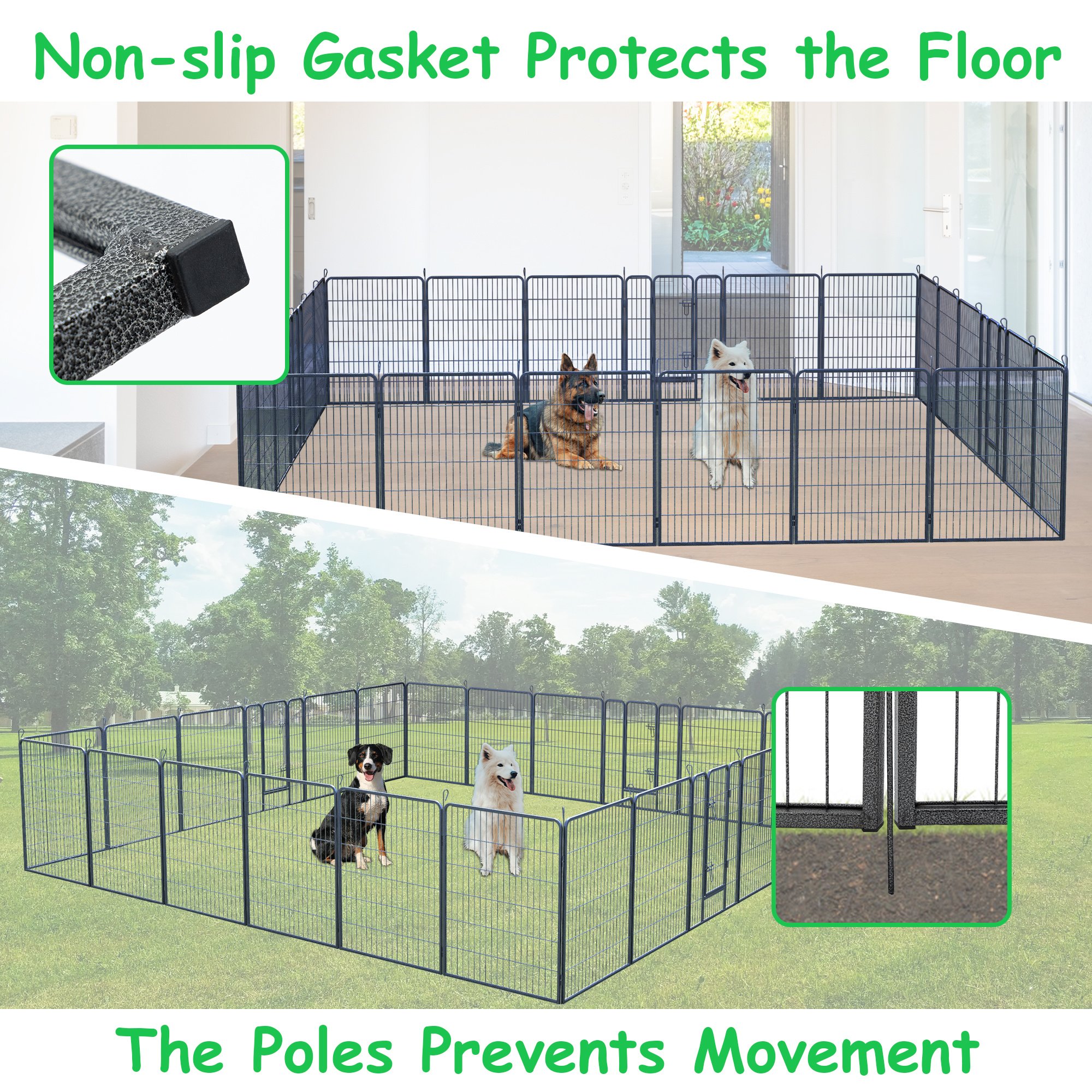 Safe & Secure: Designed with round edges and smooth steel wires, dog run playpen perfectly protect your pets from hurting; The upgraded flat rods can be easily inserted into the ground for greater stability and rigidity.
