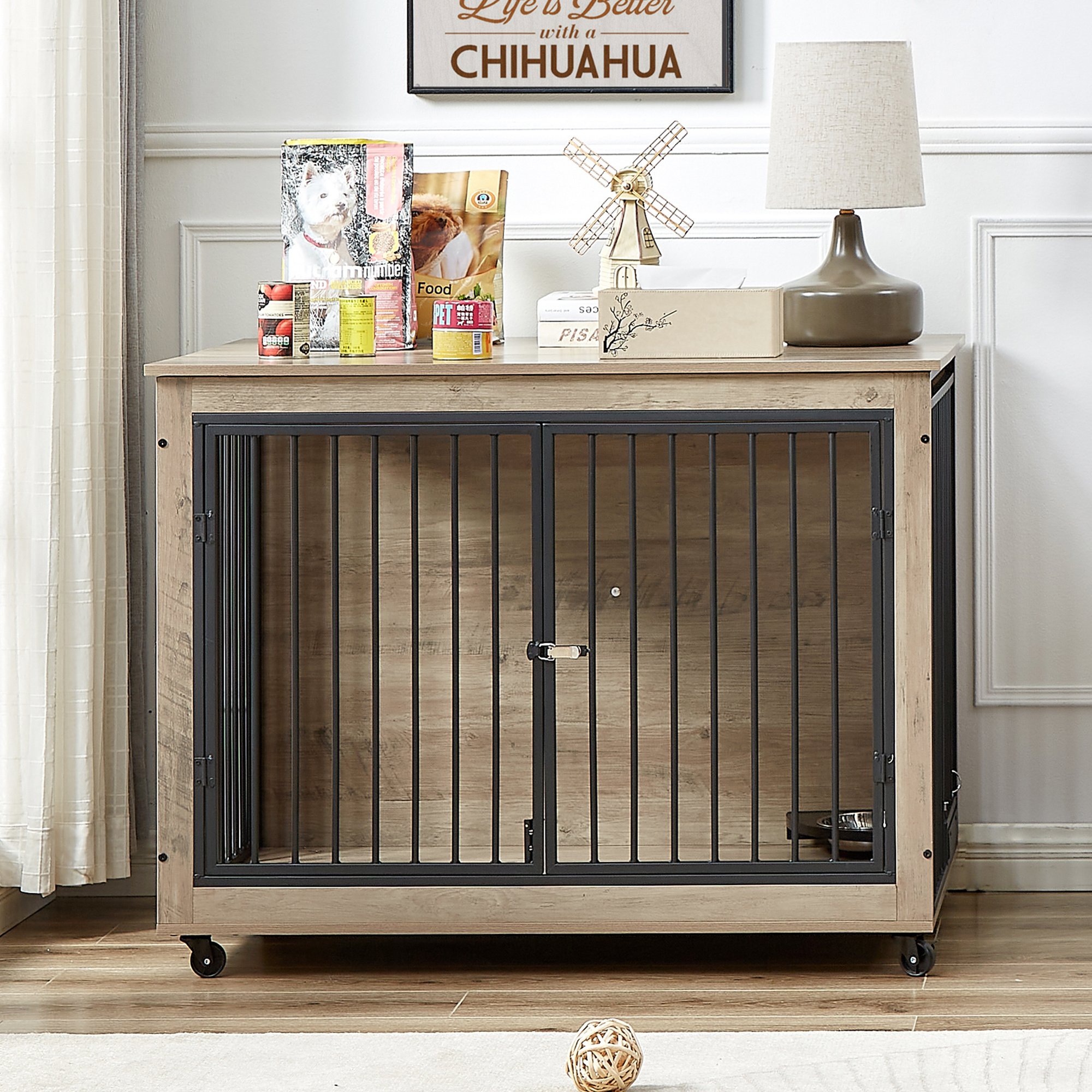 [Elegant & Dual-Purpose] Keep everyone in the house safe while keeping your homes interior designer happy with this luxury dog crate end table furniture that blends style and functionality. Kick that unsightly metal dog cage to the curb! Furniture Crate Table features a secure latching door to keep your precious crate-trained pet safely contained while you're away.