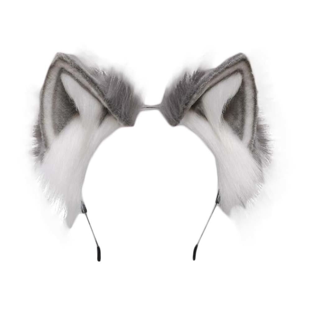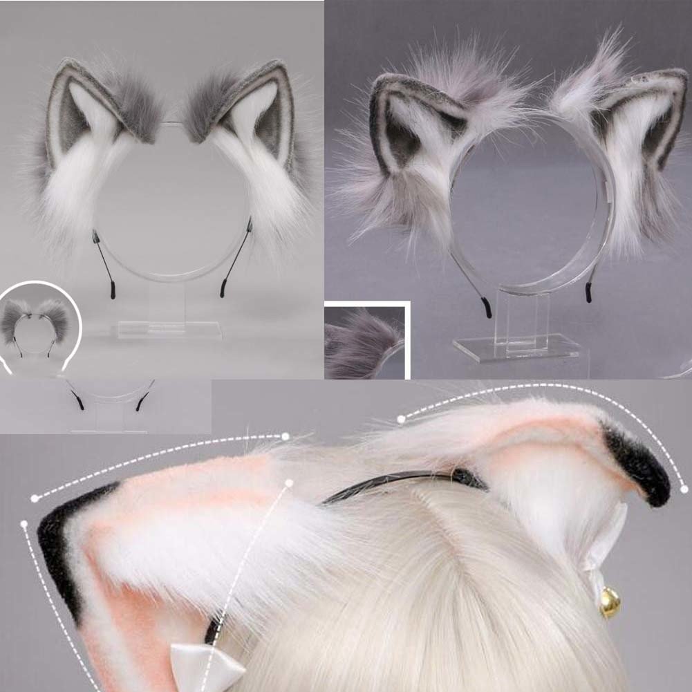 Grey Plush Cat Ears Hairband Cosplay Fluffy Dog Fox Animal Ears Grey Plush Cat Ears Hairband Cosplay Fluffy Dog Fox Animal Ears