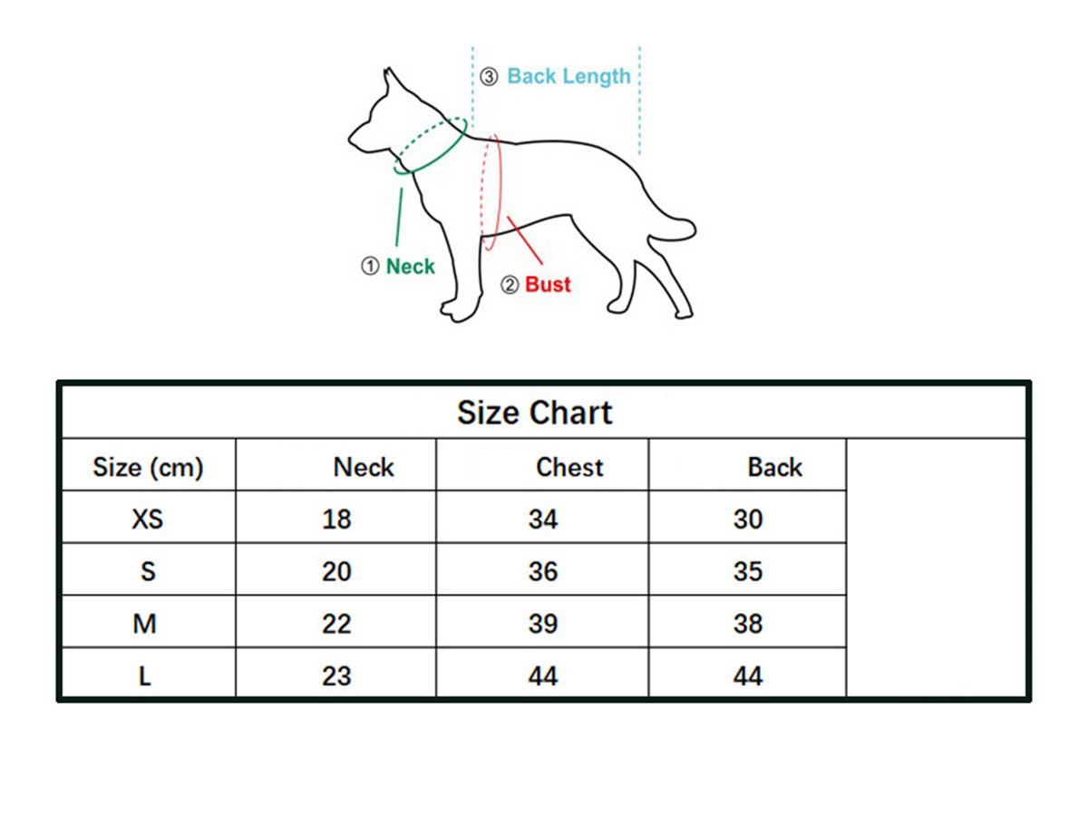 Dont buy a specific size, because this is the size you often buy in pet stores or online stores. Before you commit to the purchase, be sure to check the bust and length sizing chart and confirm the size.