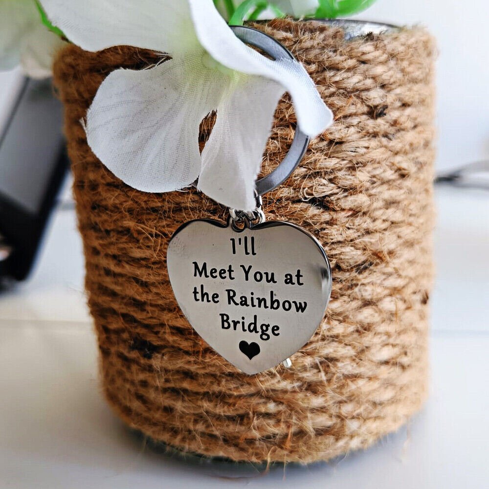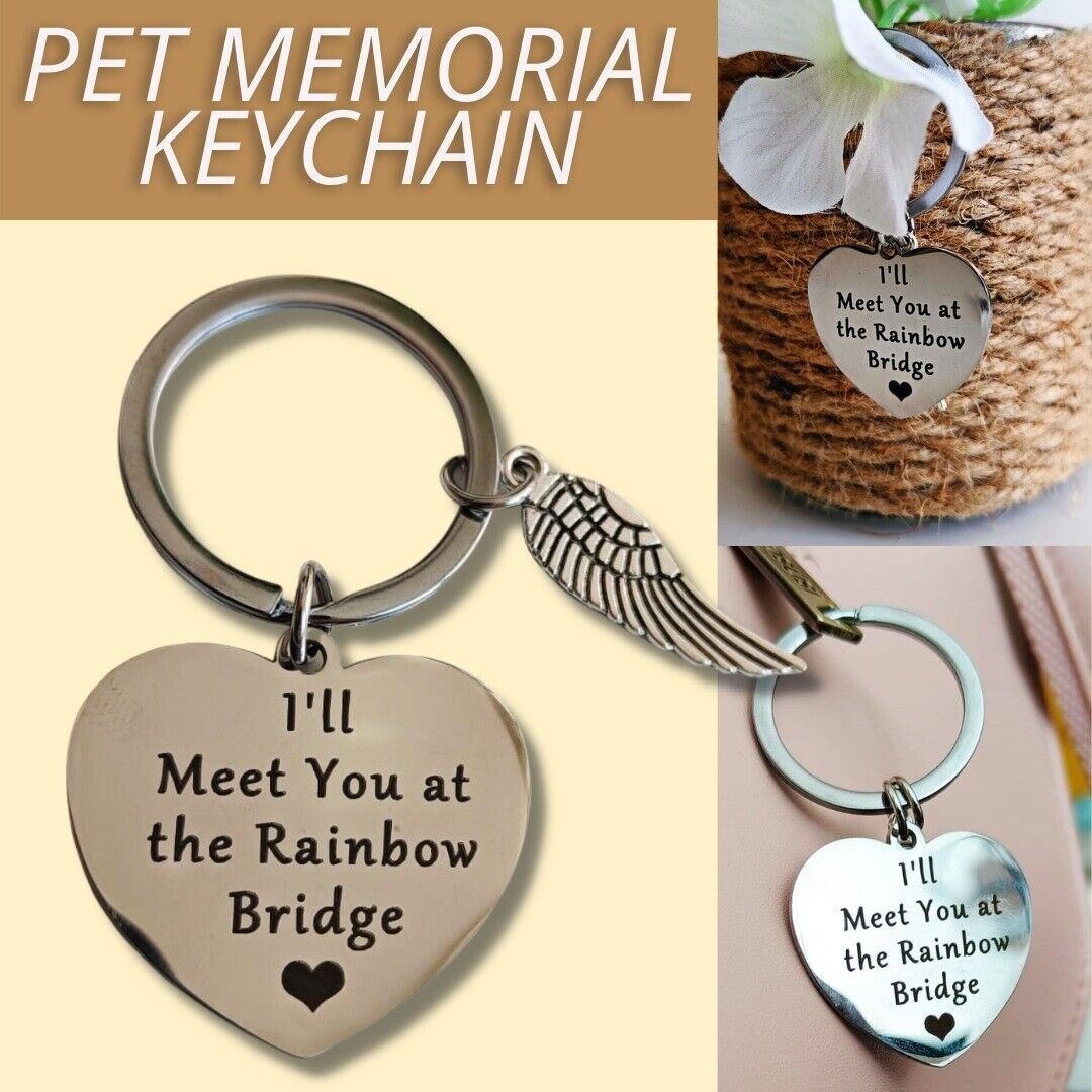 Pet Memorial Keychain : Pet Memorial Keychain "I'll Meet You at The Rainbow Bridge. "This memorial keychain is the perfect condolence for dog cat lovers in their time of mourning. Remembering the fun and loving times.