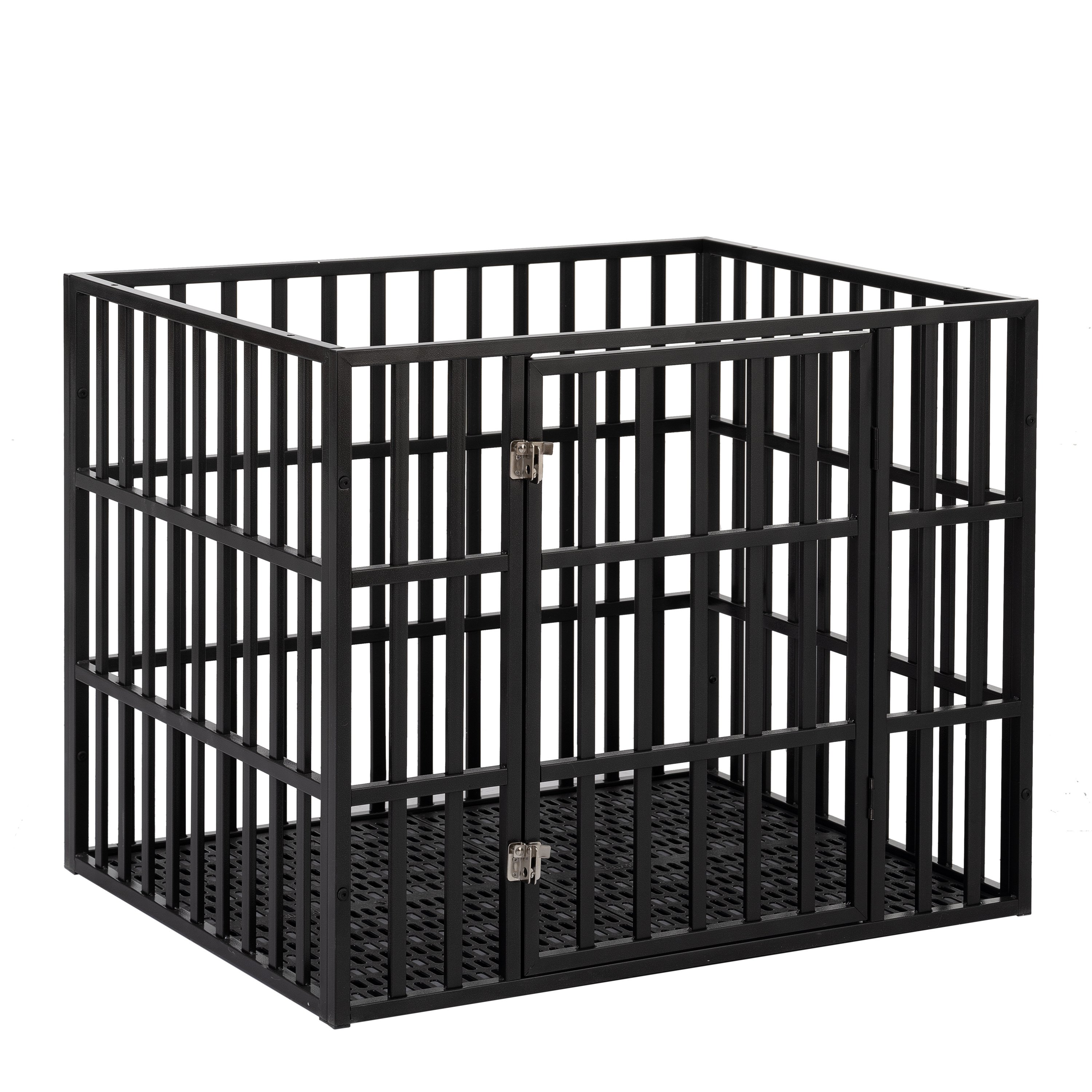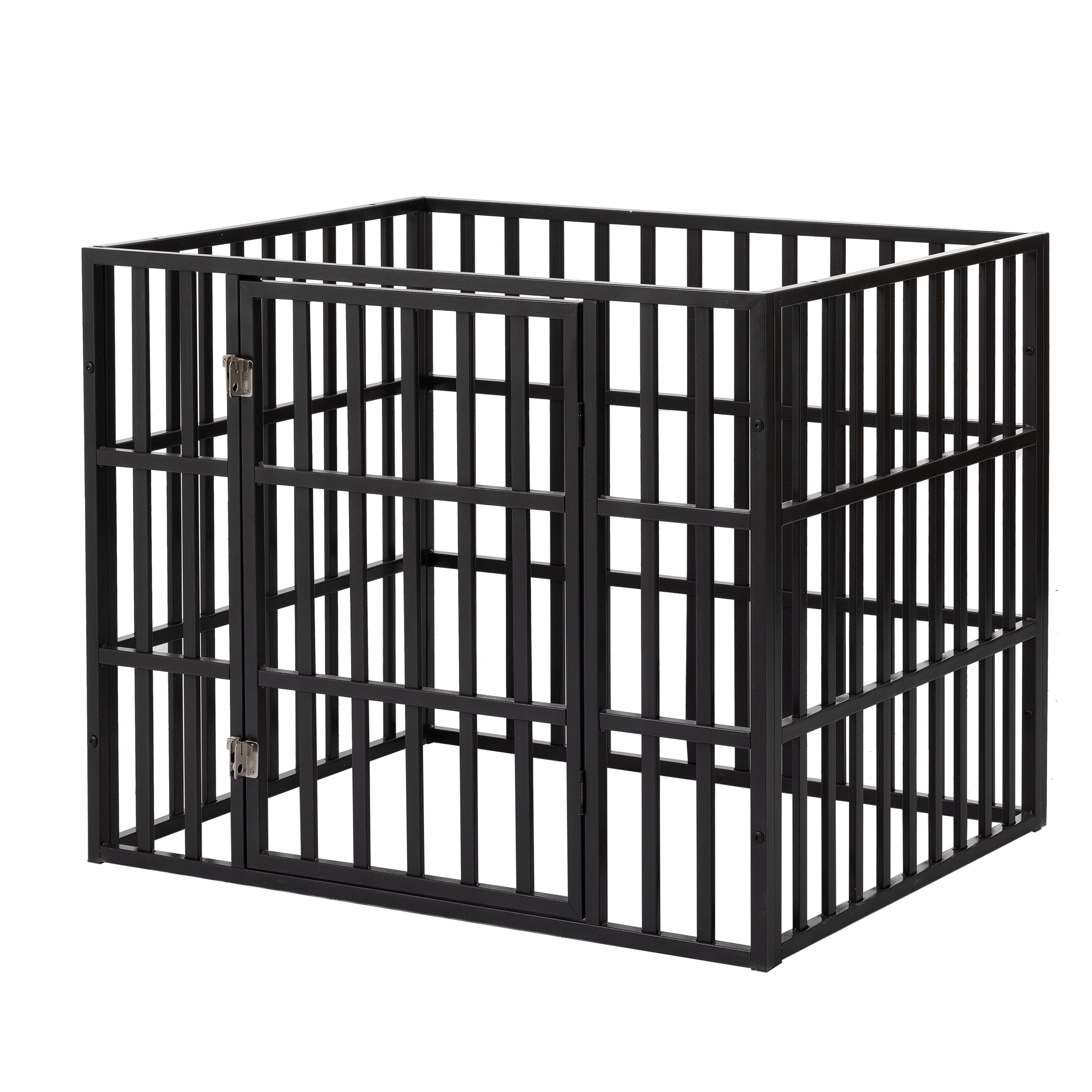 Heavy duty fense: the struture made of square tubing which in size 2cm and the thickness more than 0.8mm, the duty even heavier than ordinary crate.Easy to assemble: One person can finish assembly work on this portable dog fences within 10 minites as well as pack them away due to the rod-connected design. Covered fense design: For prevent the pet climbing or jumping from the fense, we design this covered playpen. ensure the pet can not get out to destroy your home when you go out.Outdoor and indoor use: The dog playpen features a powder coating that will help protect against rust and extend its life, which makes it ideal for camping, traveling, use in the yard and in the living room. Honeycombed Foot treadle: we prepared a honeycombed foot treadle, to preventing the pet directly contact to the floor. and also it can help to leaking the splashed water and food residue.
