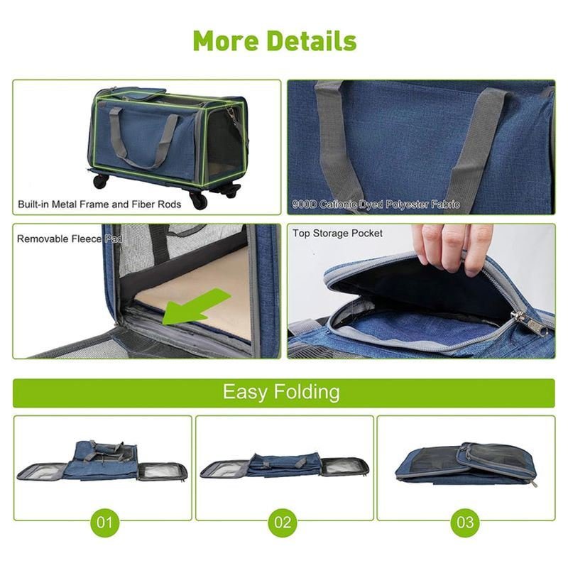 1 × Pet Carrier, 1 × Removable Soft Pads, 1 × Removable Base with Built-in Telescopic, 4 × Wheels