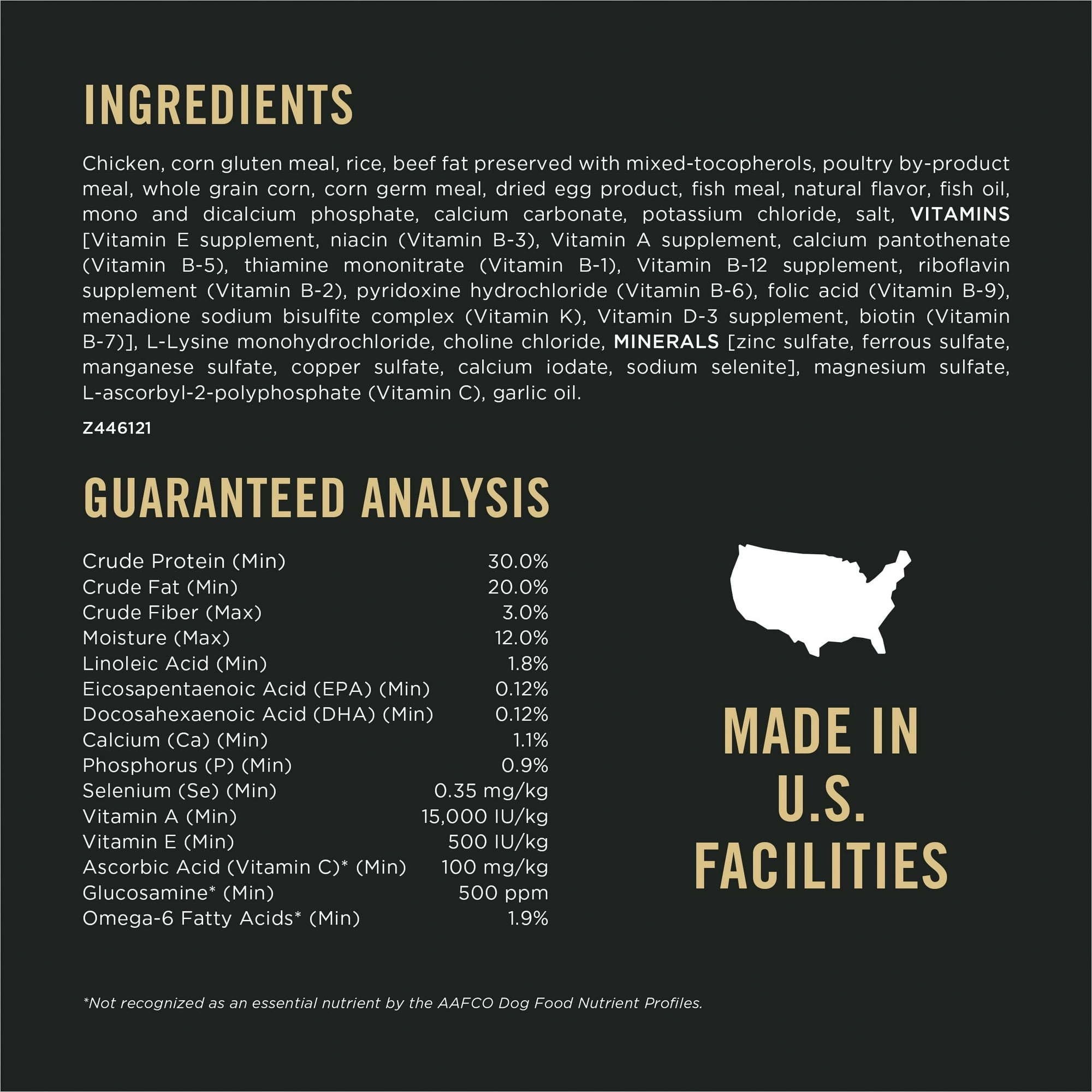 Purina Pro Plan Performance 30/20 for Adult Dogs Chicken Rice, Fine-tune your dog's nutrition with Purina Pro Plan Brand Dog Food PERFORMANCE 30/20 Chicken and Rice Formula dry dog food. Designed for highly active dogs, this high-protein dry dog food appeals to owners of sporting dogs, cattle dogs, hunting dogs and competitive canine athletes. The dog dry food formula concentrates nutrition in ways that help optimize oxygen metabolism for increased endurance. This Pro Plan dog food contains a blend of 30 percent protein and 20 percent fat to assist in caring for your dog's metabolic needs and help him maintain lean, strong muscles.
