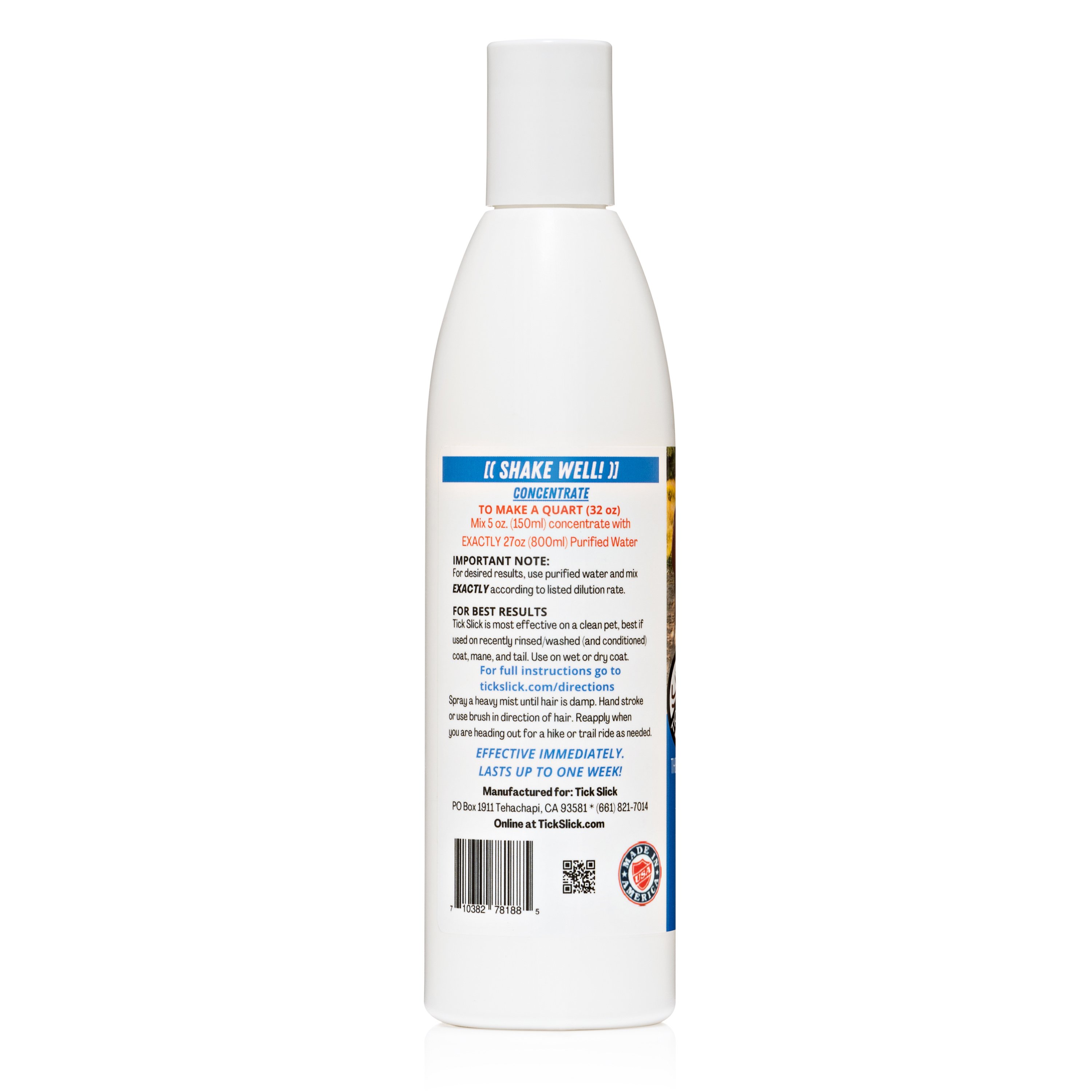 Oil-Free. Leaves no residue/build-up. Quick drying. Can be used on a wet or dry coat. Safe to use daily. Safe to use in combination with nearly all other pest prevention products. Use to easily remove stickers and tangles. Deflects Bot Fly eggs from attaching to horses and livestock. Deters dirt and creates a coat that will look and feel better than ever! Grooming time may be cut by up to 80%. Use to prevents static electricity in horses tails and winter blankets!