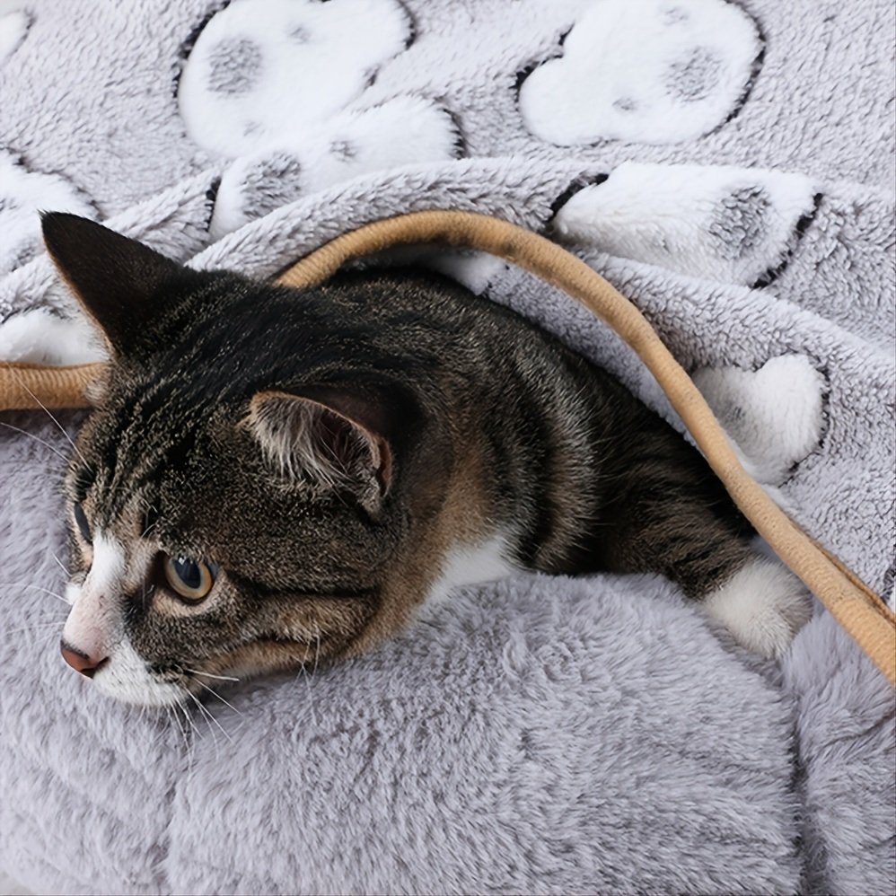 Warming Pet Pad Cartoon Paw Print Cat Warm Bed Plush Sleeping Pad